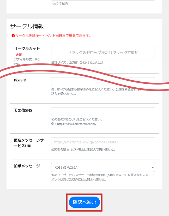 ※サークル情報は後からも変更できます